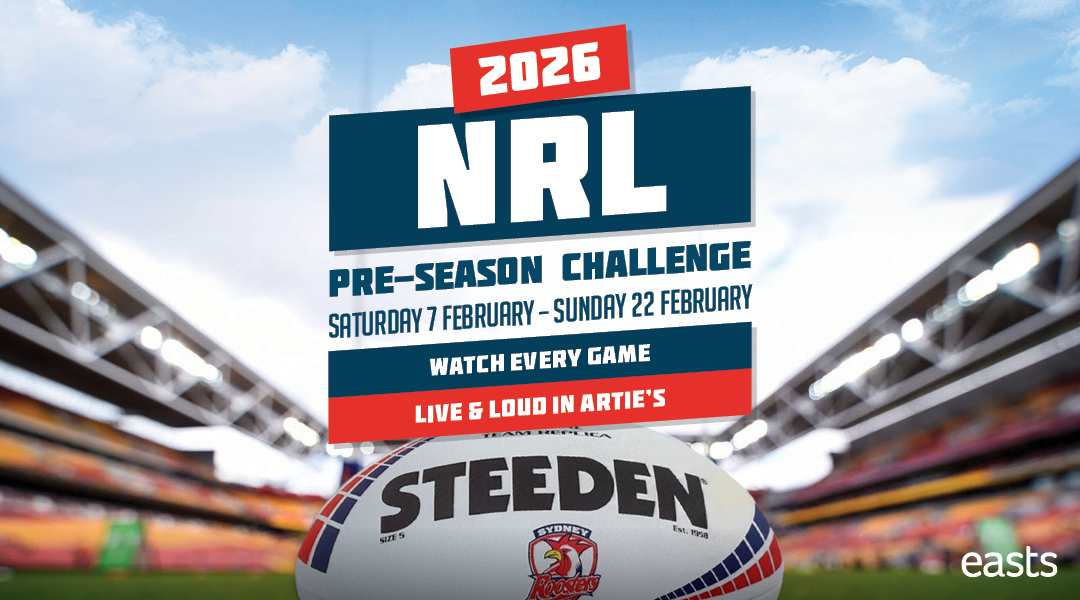 Footy's back! Catch every game of the 2026 NRL Pre-Season Challenge LIVE & LOUD in Artie's. Saturday 7 - Sunday 22 February. $...