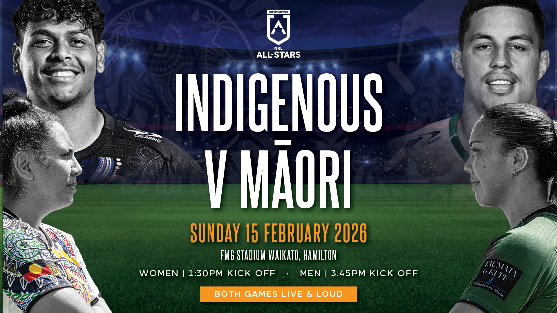Catch all the action of the Indigenous v Maori NRL All-Stars game LIVE & LOUD from New Zealand. WOMEN | 1.30pm kick-off MEN | ...