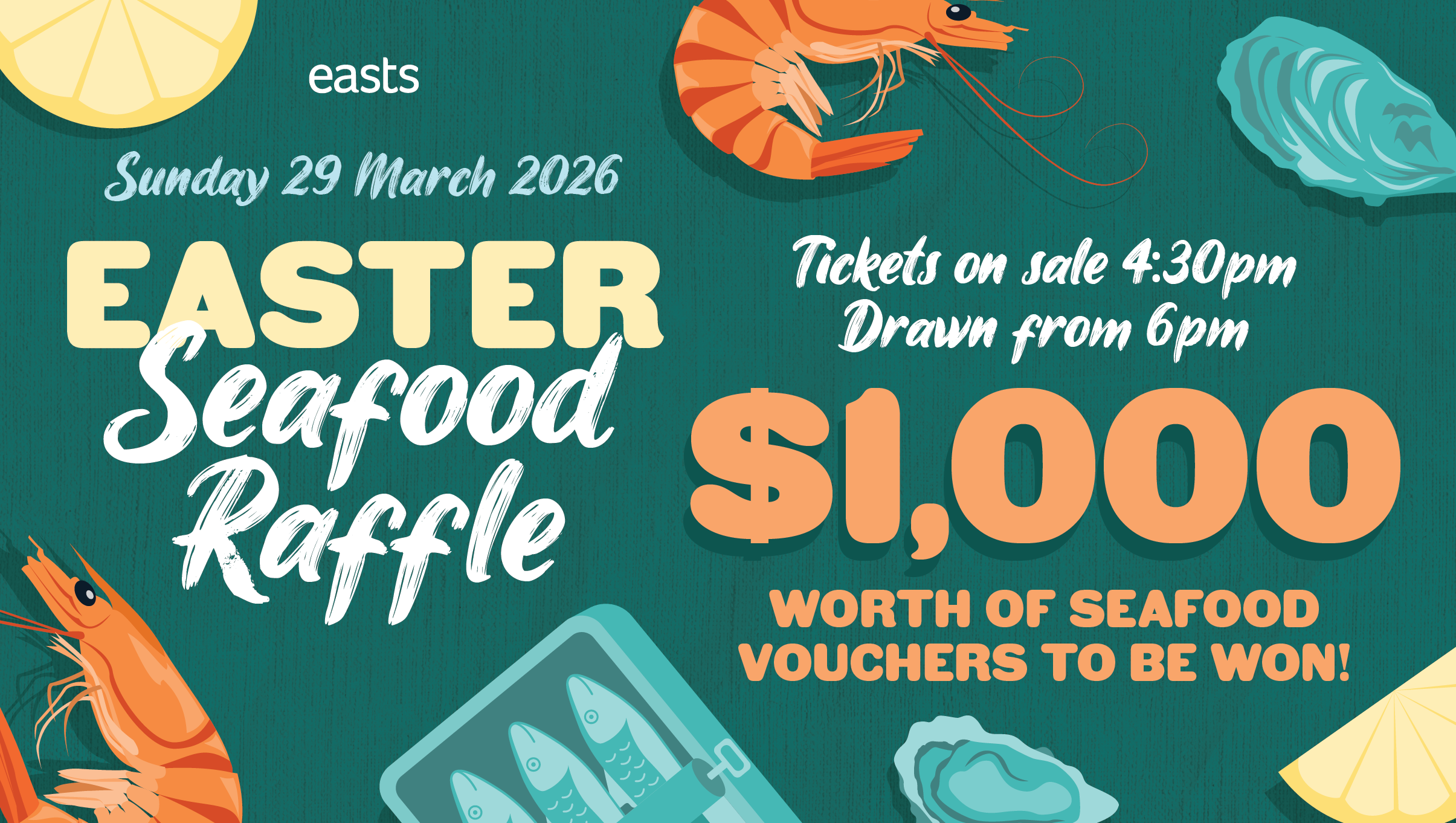 Celebrate Easter at easts with our festive seafood raffle on Sunday 29 April. There’s $1,000 worth of seafood vouchers up for gr...